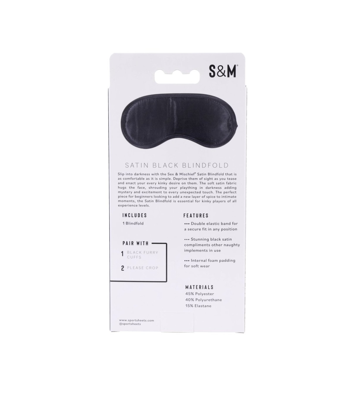 Fabricado en satén suave, ofrece una sensación agradable sobre la piel, permitiendo un uso prolongado sin molestias. Su diseño ligero bloquea la visión, potenciando el resto de sentidos y aumentando la intensidad de cada caricia.